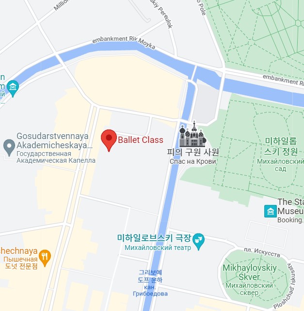 상트페테르부르그에서는 지도를 켜고 Ballet class 라고 검색을 했는데, 정말 학원 이름이 'Ballet Class'인 곳이 있었습니다. 미하일롭스키 극장 맞은편에 위치한 곳이었는데요.