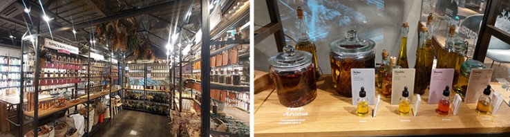 150여종의 향신료와 허브, 소금과 오일 등을 소개하는 공간으로, 각 향이 어떤 효능이 있는지 정리도 되어있고 시향도 할 수 있는 체험존 형태입니다.