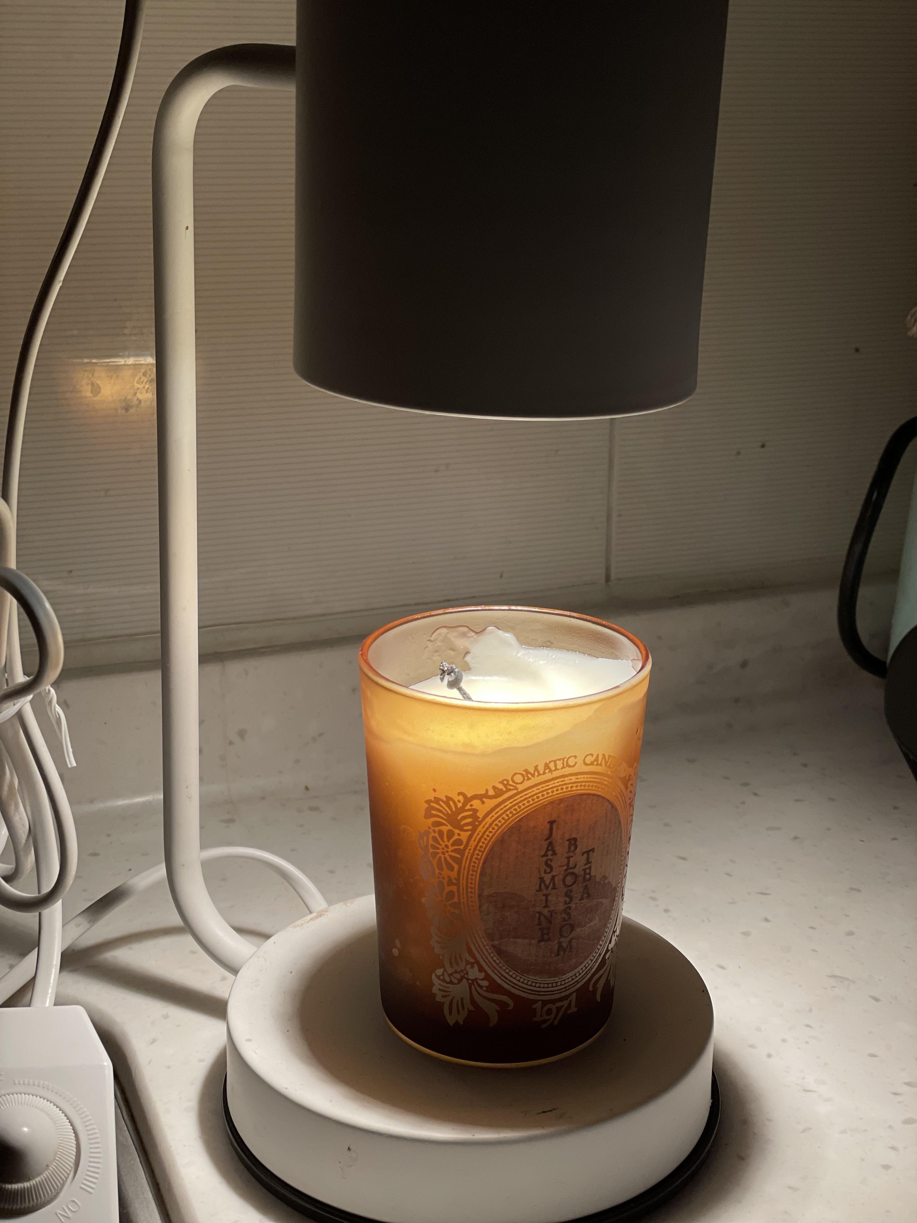 할로겐 전구 아래에 향초를 놓고 열을 이용해 향초를 녹여서 발향시키는 방법입니다.