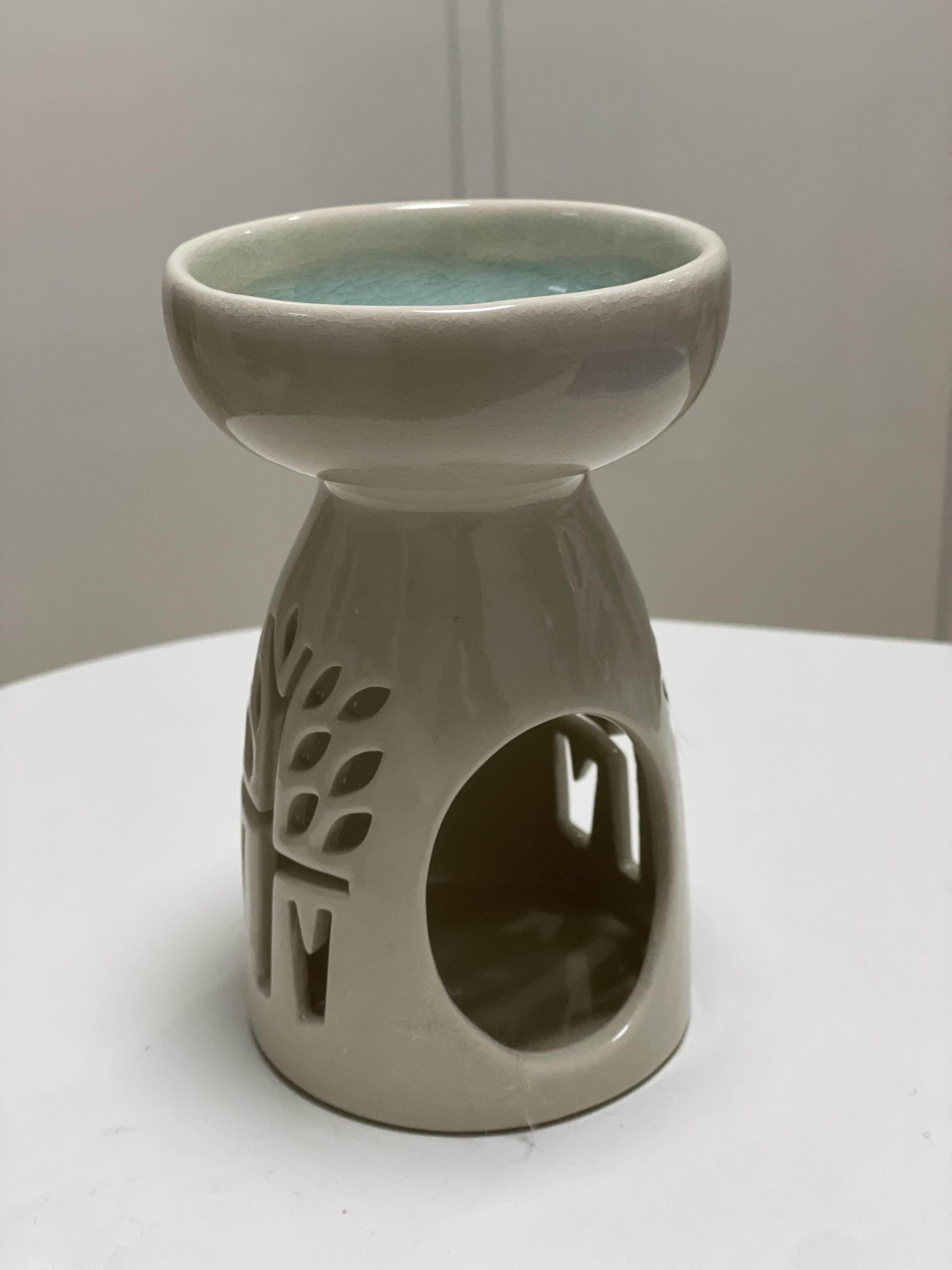 오일 버너와 유사한 생김새로, 아래칸에는 티라이트를 넣고 윗칸에 마른 찻잎을 넣어 데워주는 방식입니다.